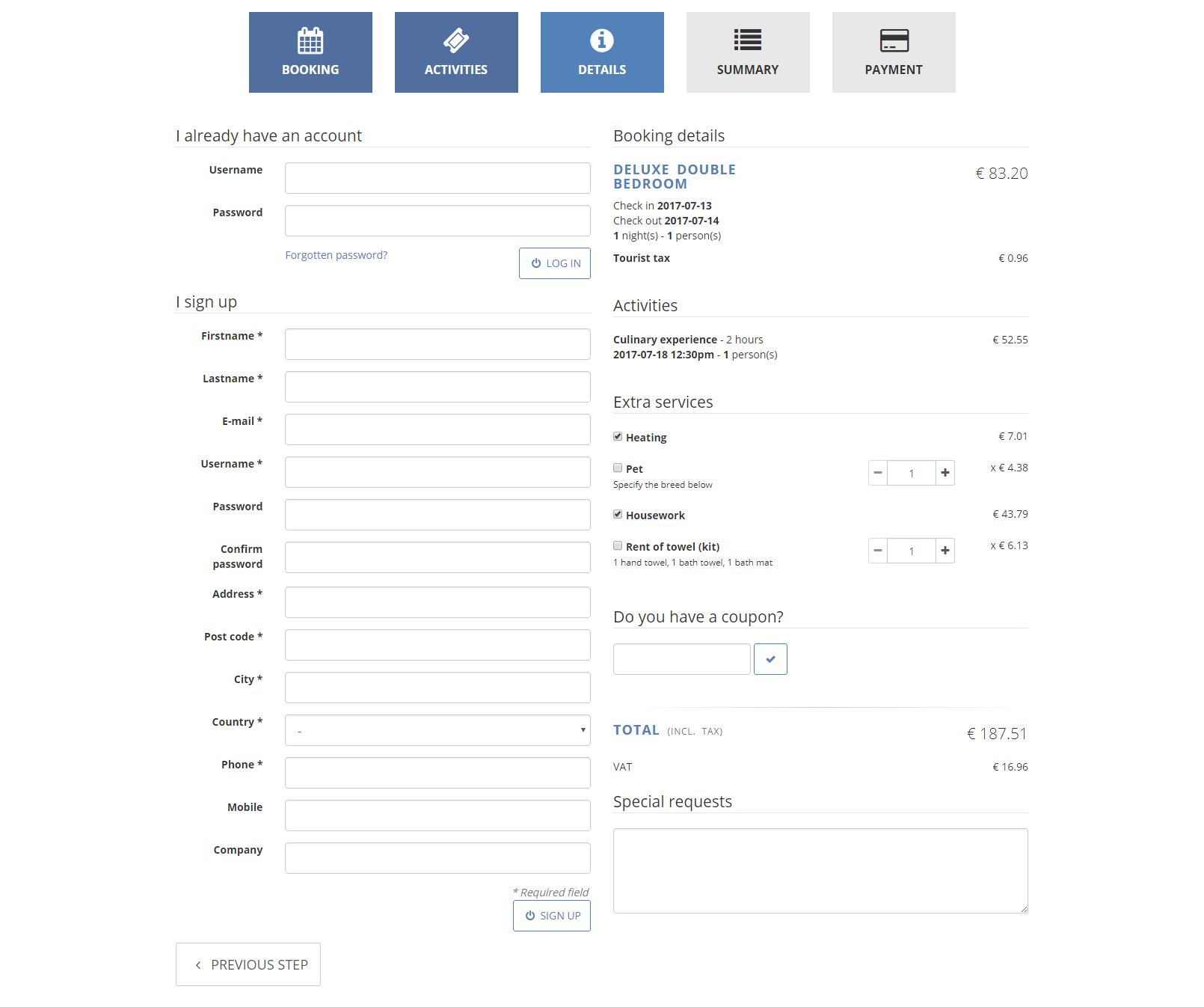 Complete Booking system (until the payment)