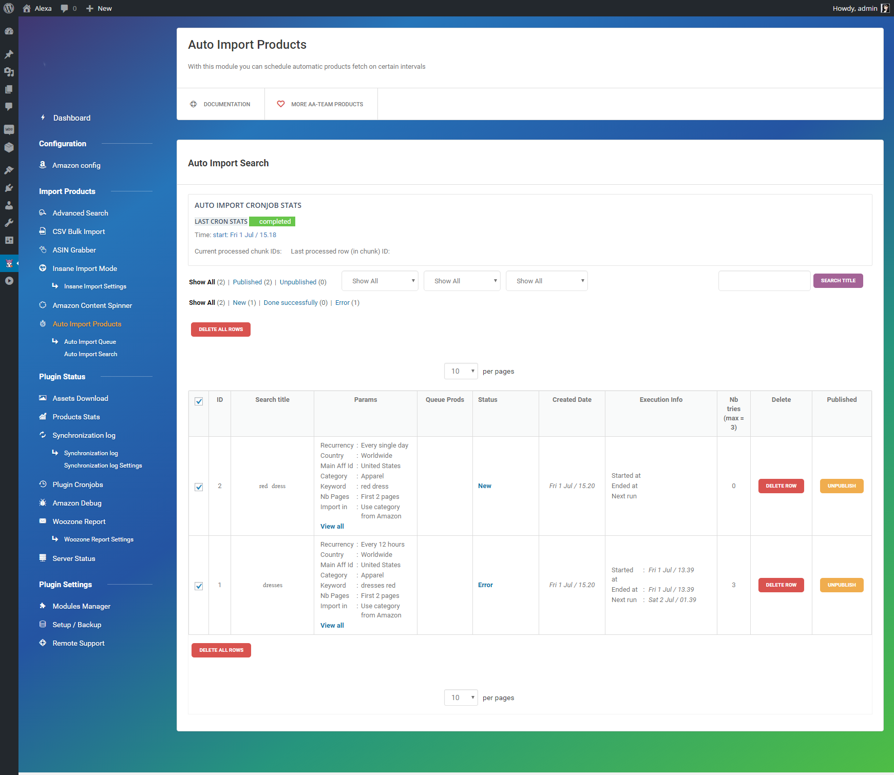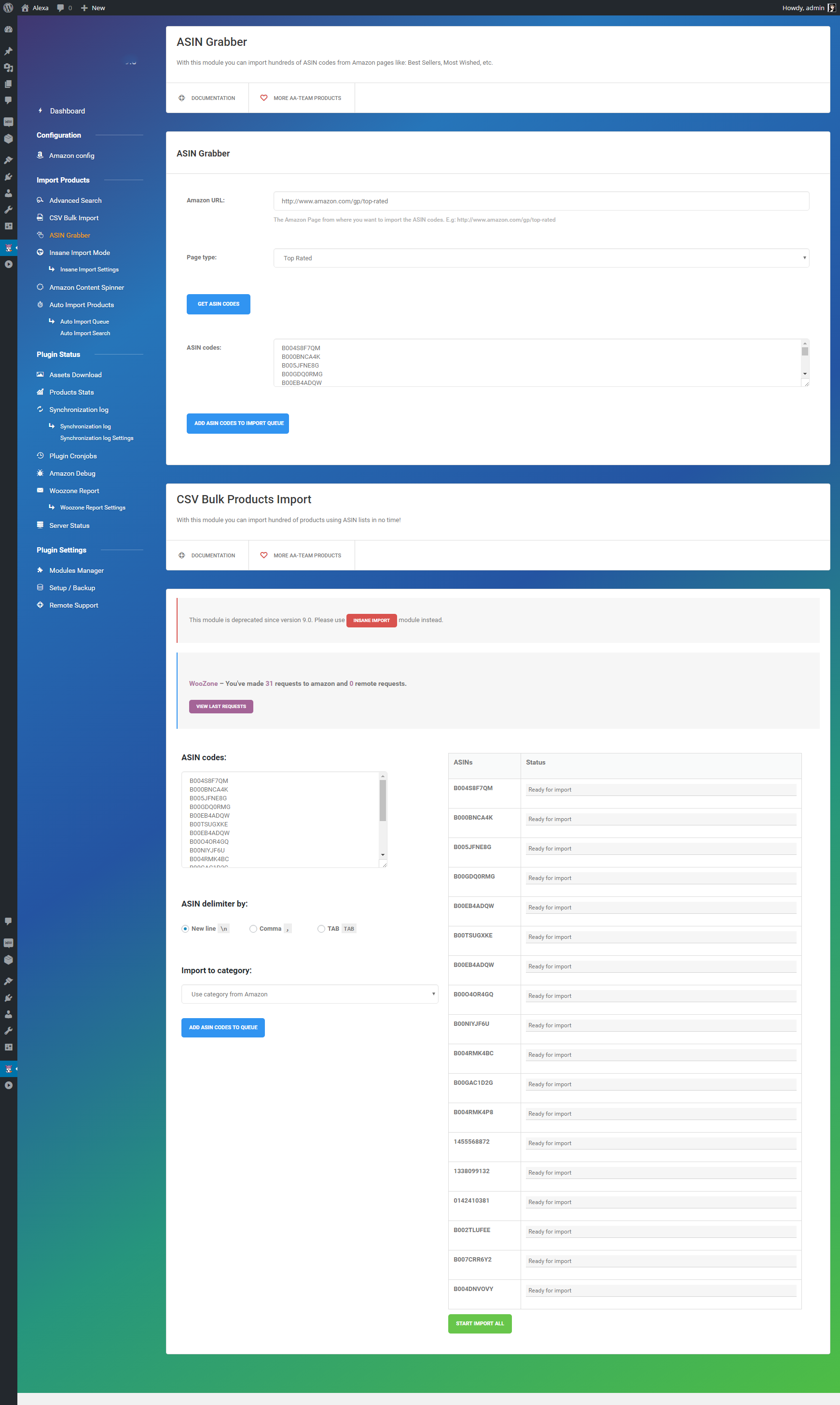 Mass Import products using the CSV module. All you need is a ASINS list.
