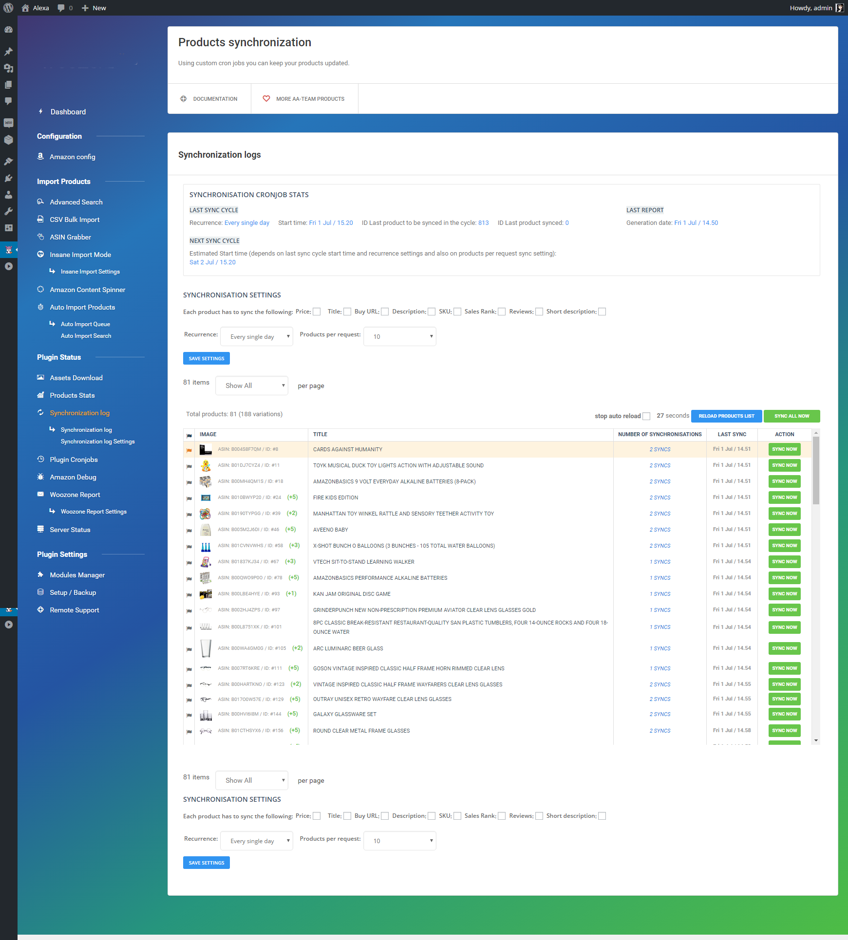 - Keep products updated using the Synchronisation Module, you can update Prices, Titles, Buy Urls, Descriptions and SKU